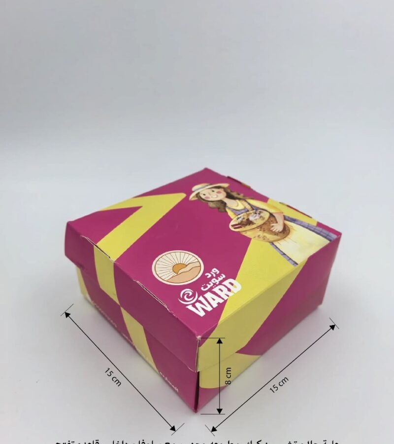 علبة حلا و تشيز كيك مطبوعه وجهين مع سلوفان داخلى قاعده تفتح و غطاء متصل مقاس العلبه 15*15*8