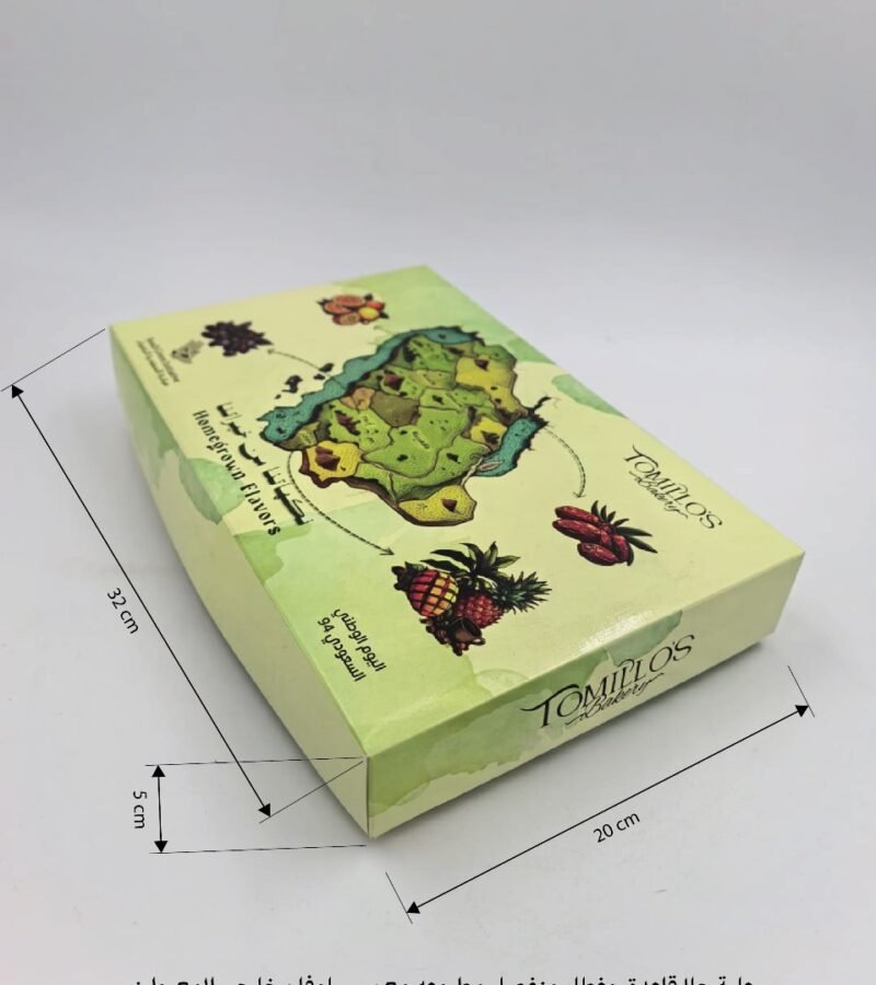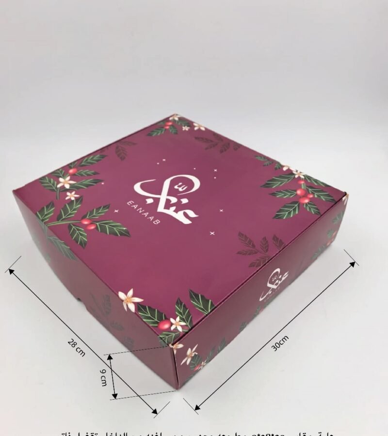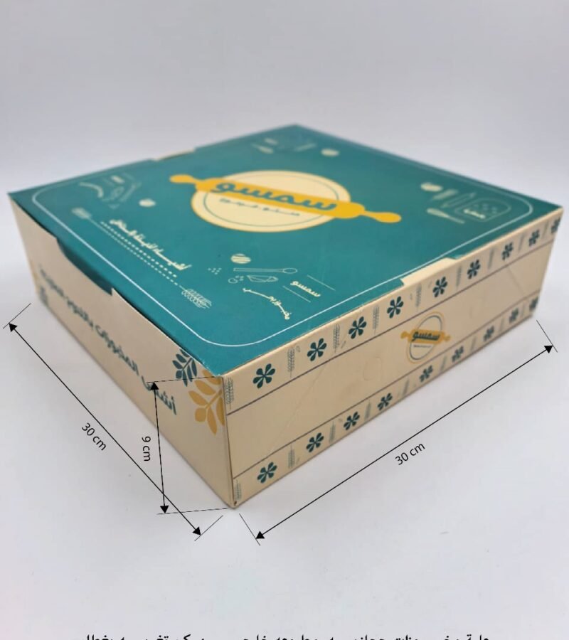 علبة مخبوزات حجازيه مطبوعه خارجي 4 ركن تغريه بغطاء متصل مقاس 30*30*9
