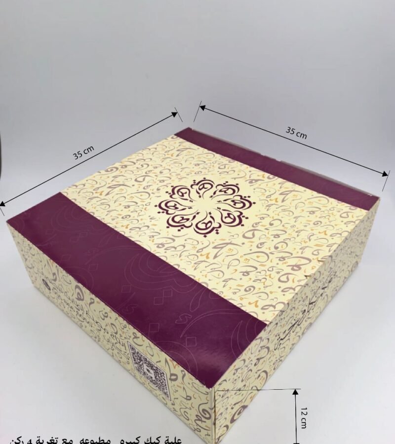 علبة كيك كبيره مطبوعه مع تغرية 4 ركن و غطاء متصل مقاس 35*35*12