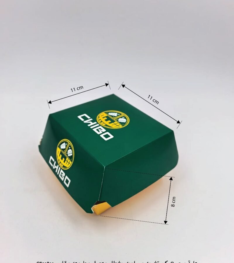 علبة برجر 8 ركن تغريه مسلوبه بغطاء متصل مطبوعه مقاس 11*11*8