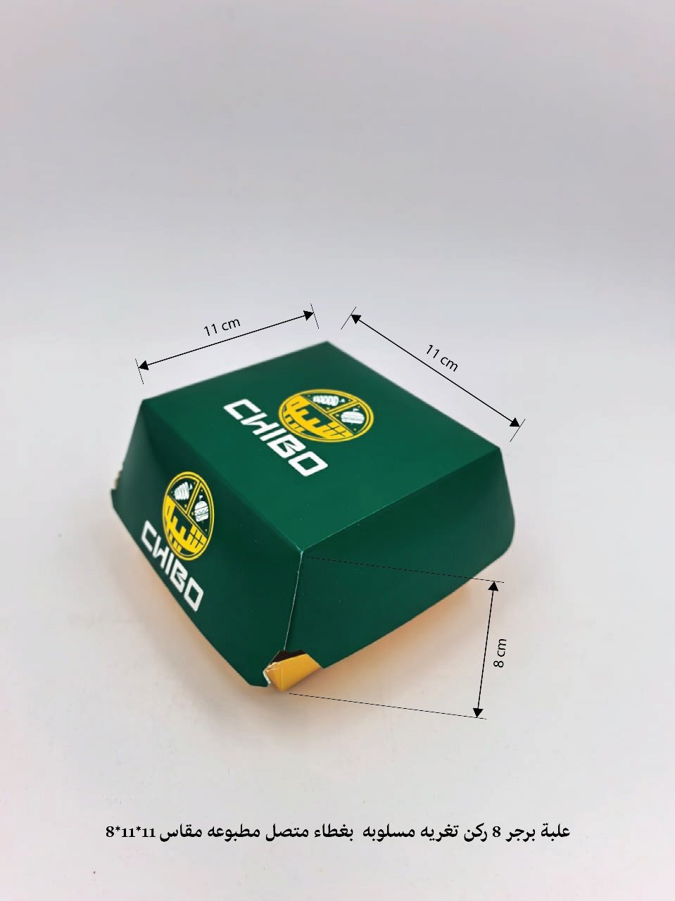 علبة برجر 8 ركن تغريه مسلوبه بغطاء متصل مطبوعه مقاس 11*11*8